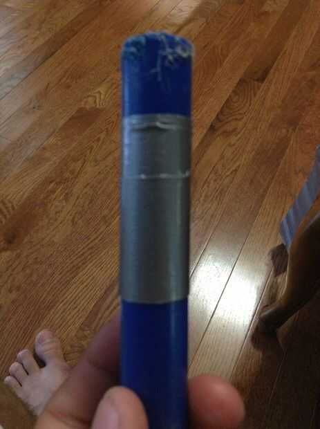 Cinta de pato alrededor del PVC hasta botella sellos alrededor del PVC