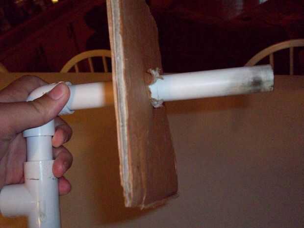 tomar la cartulina y poner un agujero en el centro con el cuchillo