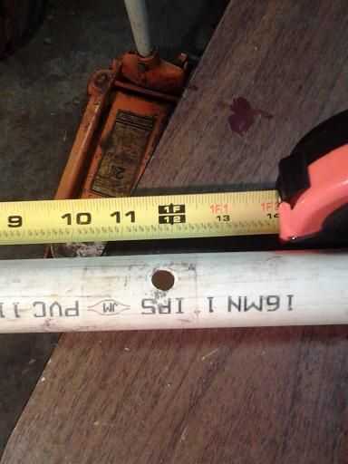 Perfore un agujero de 1 pie abajo de 4 pies largo tubo de PVC. Luego tomar el perno de 3/8 de pulgada, la tuerca y la arandela plana y ponerlas en este orden: perno, 2 x 6 con agujero, PVC pipa, la arandela y luego la tuerca. Este apriete con la llave en un lado y la mano sobre la otra. Esto no debería ser a apretado, lo suficiente como para sostener el brazo sin que caer abajo.