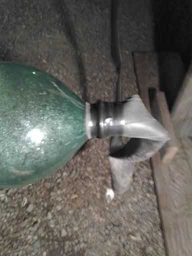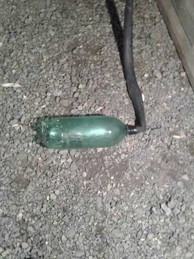 Ahora, toma el otro extremo de la llanta y la botella de 2 litros y el tubo interior del estiramiento sobre el cuello de botella de 2 litros. Envolver en cinta aislante hasta que no venga de fácilmente.