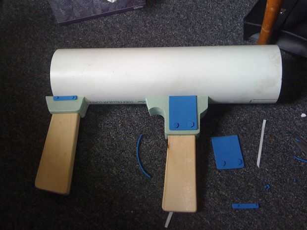 Seguí todas la piezas seprate para facilitar la pintura. Pintar todo en una pintura en aerosol negro mate. Está bien si tienes pintura negra en las partes que van a ser marrones, ayudará a enmascarar el color rosa.