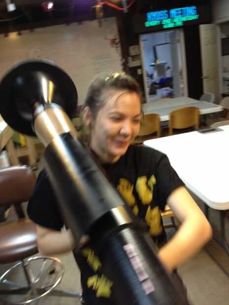 Perno de juntos, pintar y luego caliente pegamento en la punta del lanzador a la izquierda.