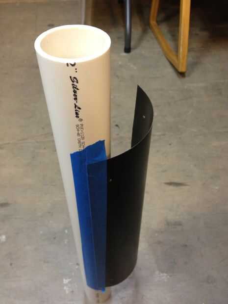 Encontrar un tubo pequeño y utilizar para doblar el metal. Tape un lado del metal a la tubería luego rodar sobre una superficie plana es una buena manera de hacerlo uniformemente. No se preocupe de conseguir que perfecto, siempre y cuando la curva está cerca los tornillos se encargará del resto. En mis pruebas encontré que es mejor exagerar la curva, de lo contrario tratará de arco para arriba y no permanecer recta. He utilizado un tubo de 2" a rodar mi metal y muelles a una curva casi perfecta.