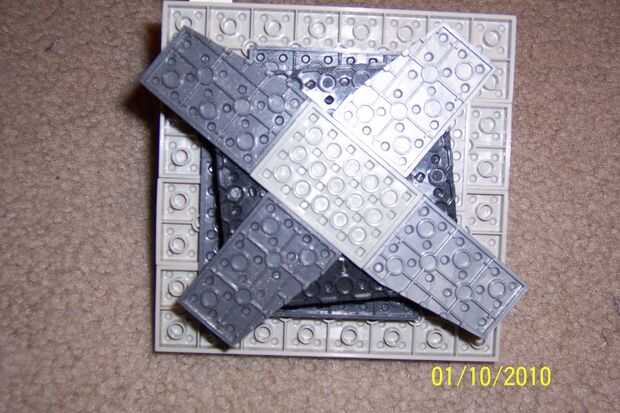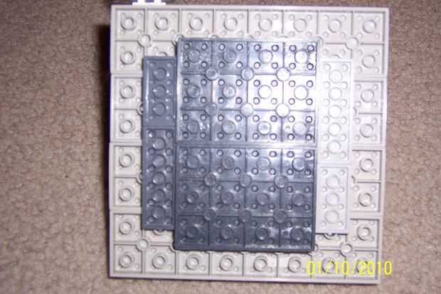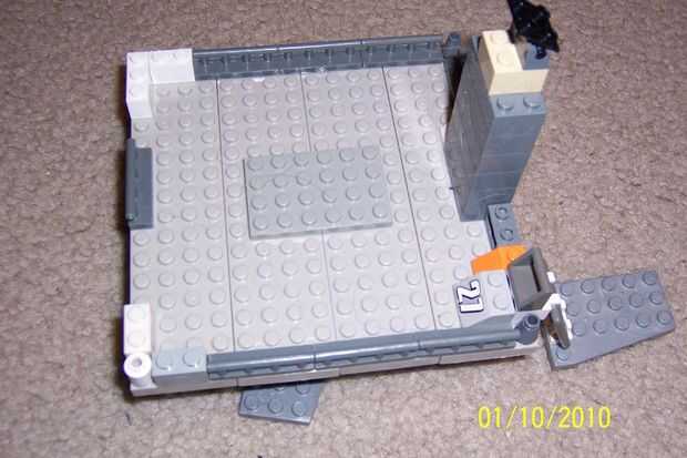 Se trata básicamente de un montante de 16 x 16 (perno prisionero siendo un "topetón") pieza de ladrillos tan gruesos como en un pequeño montaje giratorio. Da espacio para el almacenamiento de munición y estabilidad para la pistola. La base también dará su cañón alguna elevación.