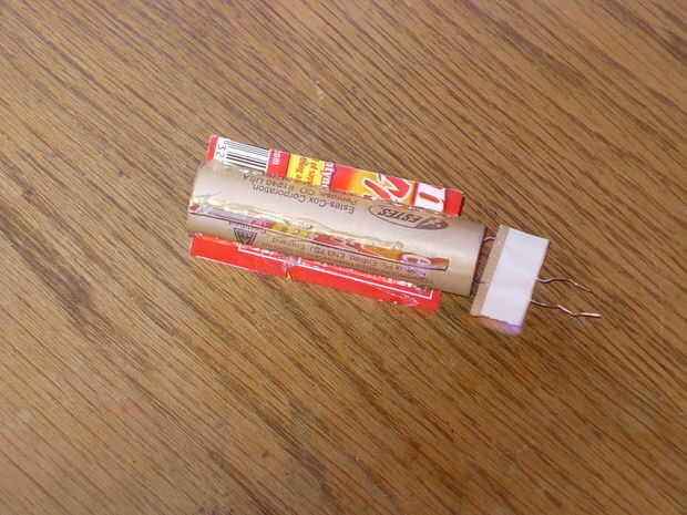 Ahora que tienes tu mearurements, utilice cartón delgado como en cajas kudos y las aletas a la anchura deseada y la longitud según el paso anterior. Colocar 4 de ellos en el motor usando una pistola de pegamento caliente y asegúrese de que las aletas son hacia el frente del motor, o va a volar (más) fuera de control. Asegúrese de que el motor cae a la parte inferior fácilmente o haz algo largo para facilitar en con.