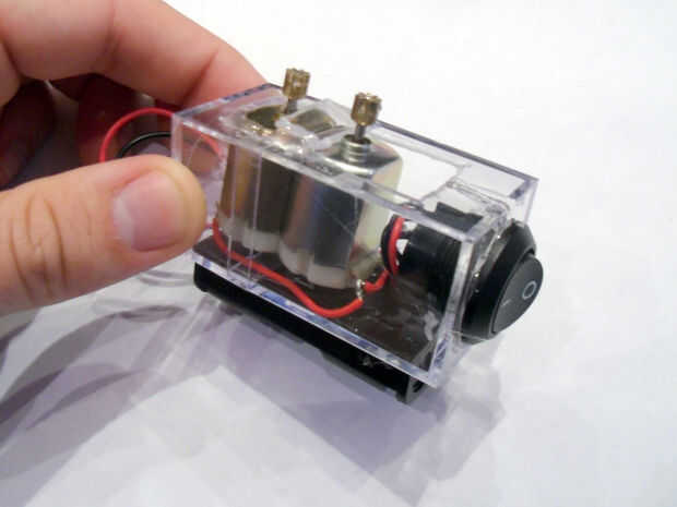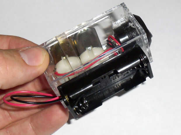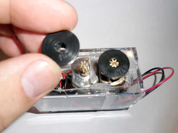 Utilice pegamento caliente para mantener todo en su lugar, asegurando que las cabezas del motor están claramente expuestas.