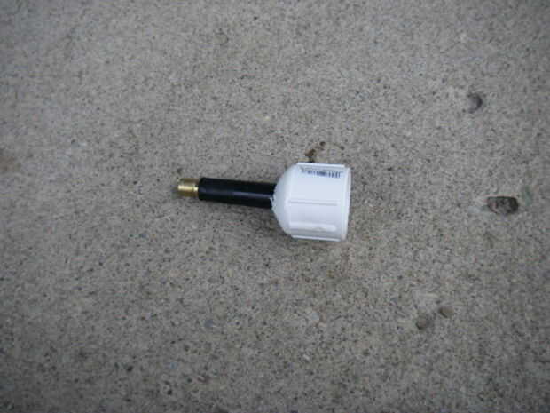 Tomar la tapa roscada y tapa perfore un agujero lo suficientemente grande para el vástago de la bicicleta. Después de taladrar el agujero pone el vástago a través del orificio.