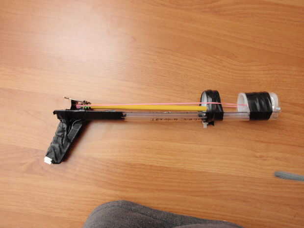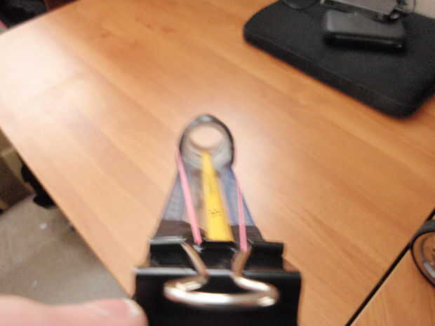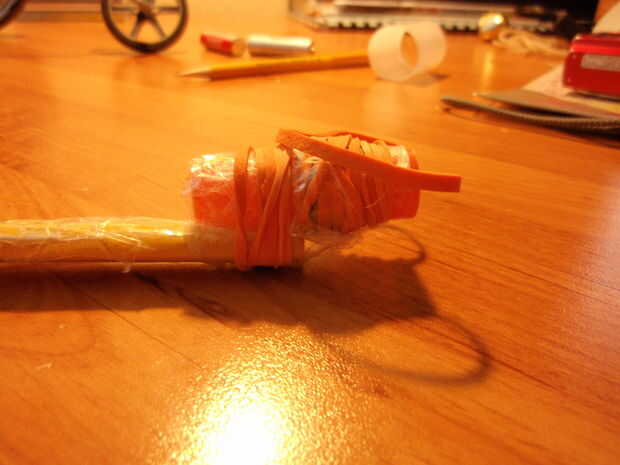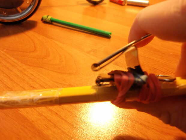 son dos lanzadores de lápiz que acaba de hacer. Las instrucciones son para el segundo, que trabaja de manera mejor. Una regla es la parte principal de esta arma. Un broche aprietapapel es el gatillo, y la energía es suministrada por una banda de caucho. Es muy sencillo de hacer, así que basta con mirar las fotos. El mango de lego es opcional. Para rodarla, pones el lápiz sobre la goma y tire hacia atrás. Luego, ponga el extremo del lápiz (con la banda de goma alrededor de él) en el clip y deje que se cierre. Para disparar, simplemente apretar el clip, que permite ir del lápiz y la goma elástica, que fuerza el lápiz hacia delante, impulsando de la pistola. El tubo en el extremo para mantener el lápiz va recto hasta que deja el arma, así que su muy bonito a un barril. La pistola primera que ves es la primera que hice y el segundo conjunto de fotos son mi arma más reciente.