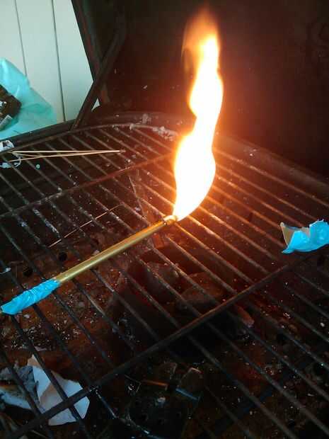 4) poner una pequeña cantidad de barbacoa de gas, luz con una seguridad más ligero (más ligero). Esto hará que una pequeña llama, poco a poco hasta la cantidad de gas para que pueda obtener una llama más grande y más largo. No necesita hacer uso de la parte de oxígeno de la antorcha, como el acetileno es todo que desea.