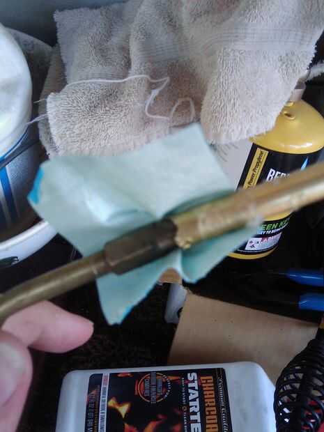 2) pusieron el 3/8 reductor extremo del tubo en el tubo (el lado con epoxy en él) Asegúrese de que todavía puede fluir aire lanzó ambos, si pueden perforar hacia fuera algunos epoxy lo que puede.