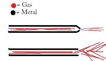 Ok, permite aclarar algunas cosas, en primer lugar, la tubería se utiliza para mover el gas, bastante simple, a continuación, el reductor se utiliza para aumentar la presión de los gases, que hace la llama disparar hacia fuera más.