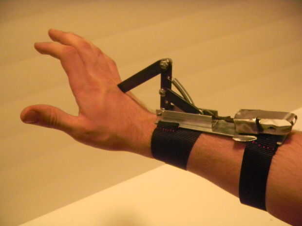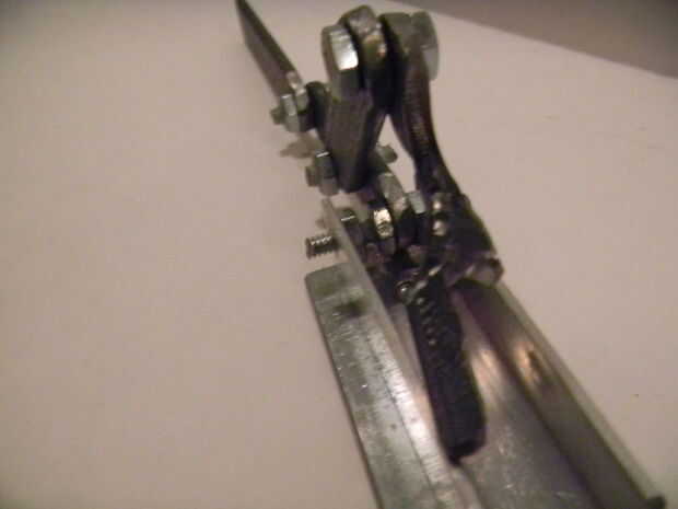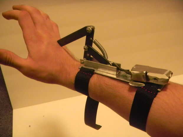 Muñeca: Esta sección fue hecha de la acción de barra de acero y aluminio, cortado adecuadamente y mantienen Unidos mediante remaches, varilla roscada y tuercas. El tanque de butano se almacena aquí, que se toma de un encendedor de barbacoa. El mecanismo fue diseñado para mano/muñeca, y así que medidas iba a cambiar de persona a persona.