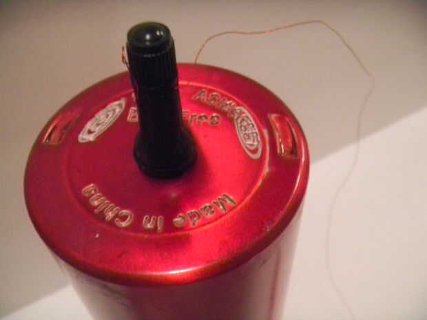 Una botella de agua de aluminio fue comprada en la tienda local de dólar para ser utilizado como el tanque de combustible. Los agujeros fueron perforados para que la válvula de un neumático podría ser colocada en un extremo y una válvula de solenoide en el otro lado. Se desatornilla la tapa, y alcohol desnaturalizado está vertido en la botella, entonces cerrado y a presión con un compresor de aire de 30 PSI. La válvula solenoide comenzó a fallar en aproximadamente 40 psi, y tan 30 era aproximadamente tan alta como el sistema podría ser presurizado para ejecutar pruebas de forma segura.