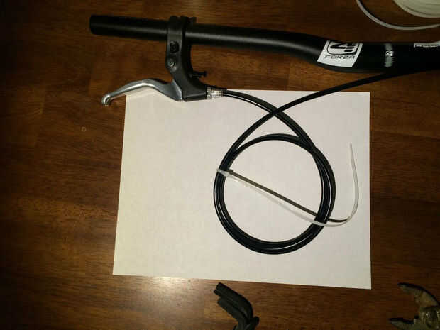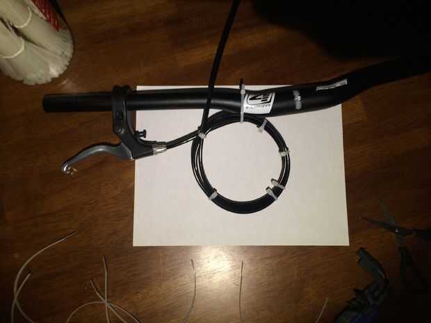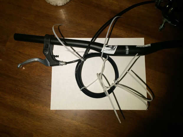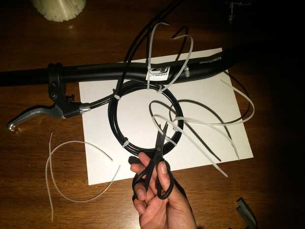 Deslice los frenos de mano en el manillar y apriete para permanecer en el lugar correcto. Si hay adicionales de cable de los frenos de rueda para arriba y asegúrelo con abrazaderas de plástico. Corte cualquier innecesarios extremos de los lazos zip una vez que termines.