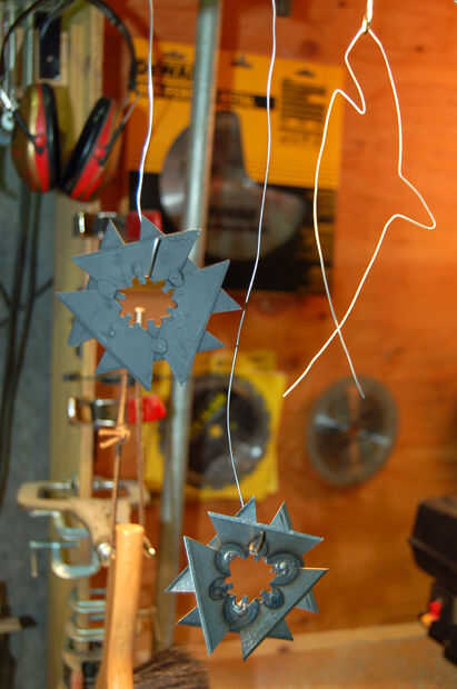 Generalmente una longitud de alambre en un gancho de la curva y colgar la estrella de él para que pueda rociar todas las partes a la vez y colgar a secar bajo una lámpara halógena.