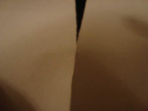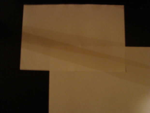 Obtener una hoja de papel, pero no lo squarize. Doblar por la mitad para obtener la figura 1. Lamer el borde del plegamiento a fig 2. Rasgar la página a lo largo de la parte húmeda (Fig. 3) para obtener fig 4.
