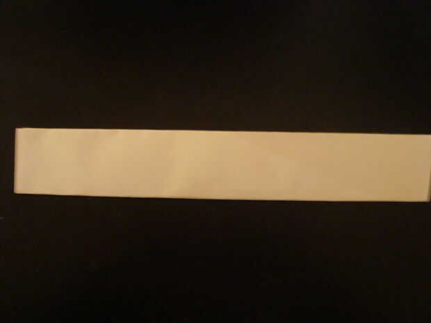 aquí es un micro origami lanzando estrellas de un pequeño 1/8" x1.5" tira de papel.  El stip fue cortado por la mitad para hacer dos partes de la estrella.Para hacer el inicio puede toma una de las tiras y dobla la esquina superior derecha del p