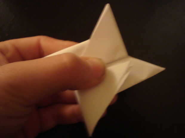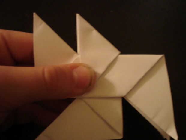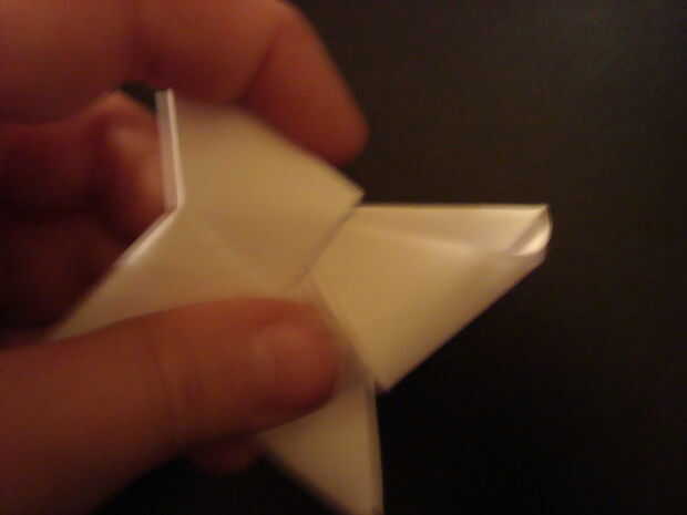 Tomar las 2 unidades y colocarlos como fig 1. Dale la vuelta y doble esta aleta hacia abajo en la figura 2. Hacer para la fig 3, también. Doblar los extras hasta conseguir una figura 4. Meta en una aleta en otro como en la figura 5. Empuje completamente para terminar con una fig 7. Hacer para el otro lado, también.