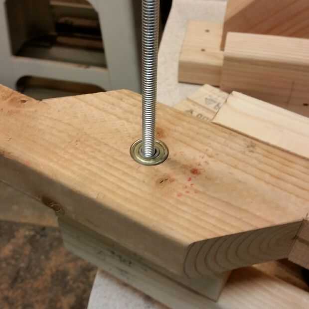 Una vez tengas las piezas cortadas de 2 x 4, usted necesitará perforar agujeros para los accesorios. Siempre recomiendo brocas Forstner y un taladro para avellanar las tuercas.