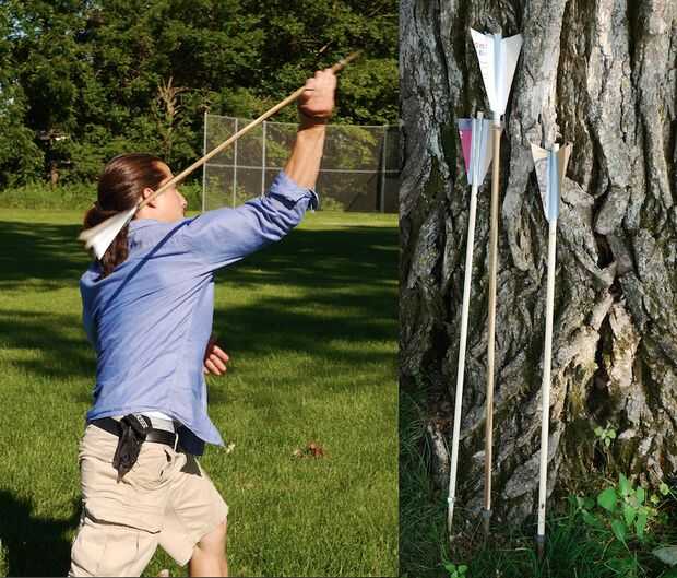 Lanzar flechas están un increíblemente divertido y fácil de hacer proyectil. En su forma más simple, constan de un eje dentado, plumas y un contrapeso. Con la ayuda de una longitud de cadena, estas flechas pueden lanzar grandes distancias. Con un viento de cola he lanzado les en cuanto a 150 yardas.