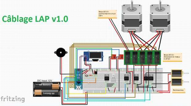 Aquí están los planos, estoy seguro de que ustedes saben como leer estos. He intentado usar rojo para + 5/12V y negro para tierra, los colores son generalmente conectado a Arduino. (Nota: los motores paso a paso son rojo y negros sobre Fritzing pero son cables de comunicación.