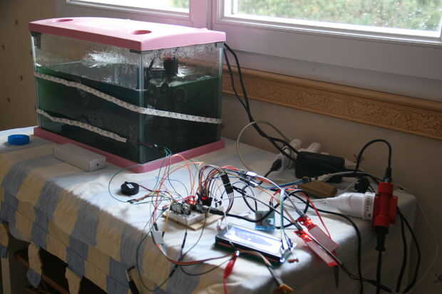 -todos estos componentes utilizan corriente. Un simple puerto USB es apenas suficiente (0,5), puede probarlo usted mismo, la pantalla LCD estará apenas encendido, los valores de los componentes de leds mal, parpadeo... Utilicé una fuente de alimentación DC de 2.5A (cargador de teléfono) y todo funcionaba bien.