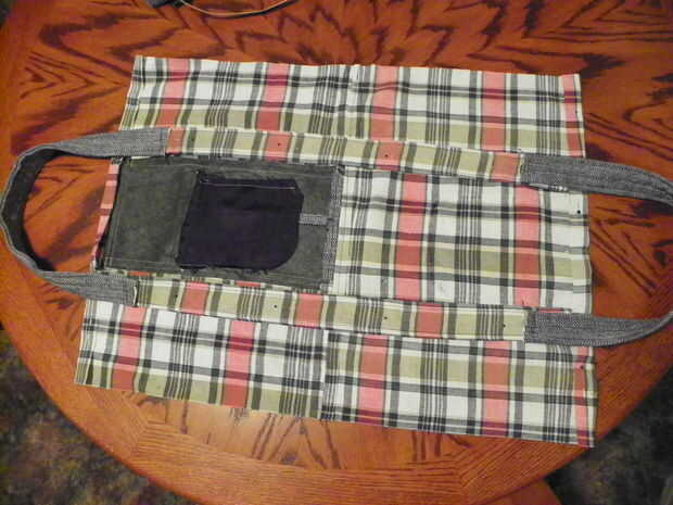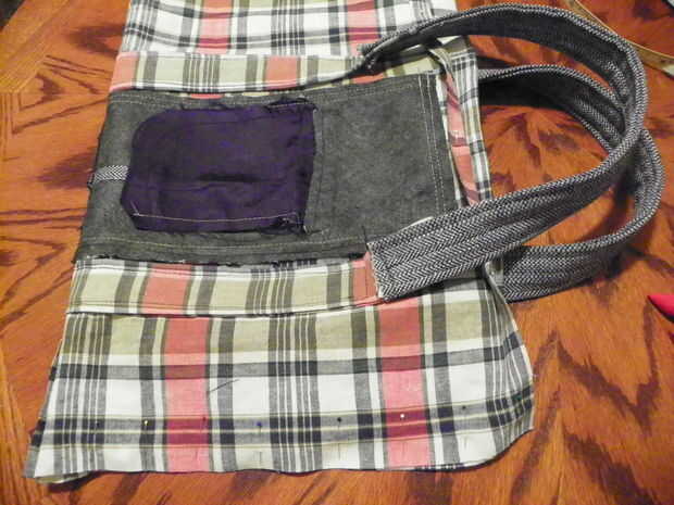 Pone la cara de forro hacia abajo y coloque la sección del mango sobre esto con las secciones de la capa que se extiende más allá de la guarnición. Encontrar el centro de la guarnición y medir 3" a partir de esto. Mida 3" en la dirección opuesta y coloque el mango aquí. Esto le dará 6" entre las asas. PIN identificador de guarnición. Máquina coser camisa forma parte sólo de la manija a la guarnición, dejando sueltas las secciones de la capa de la manija. doble forro en lados mal la mitad y coser las costuras laterales con costura de 1/2". hacer un fondo plano para la alineación de apertura y aplanar el lado las costuras hacia abajo contra la costura de la parte inferior. PIN. cosa en la esquina de 1" por encima de la esquina. Repita con el otro lado. cortar las esquinas.