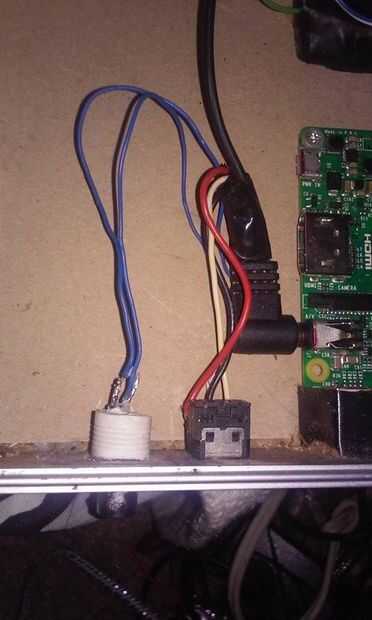 Utilicé un viejo regular 5 mm azul LED para un indicador de encendido, conectado a los 3, 3V GPIO en el Raspi (estaba demasiado asustado soldar a las luces de energía o actividad reales en el Raspi).
