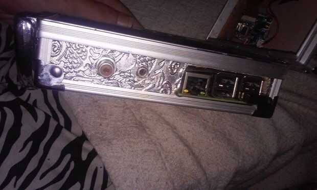 Otra vez para esta parte, te sugiero trazar el enchufe de su caso antes de realizar cualquier modificación para que no terminen accidentalmente haciendo un hueco demasiado grande para los puertos de. Usé mi x-acto para hacer los agujeros, sólo girando en un círculo y funcionó a la perfección. después de conectar los conectores a lo 3,5 mm A / V cable super pegado las tomas en el lugar.