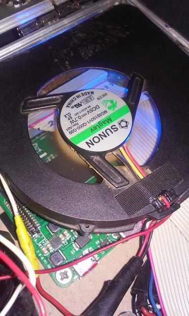 Dependiendo de cuál es conectado ya a la GPIO puede que necesite modificar el cable de cinta para la Pi. Tuve que mina corte en el perno 28 de obtenerlo para adaptarse a lo que quedaba en mis pines GPIO. También tuve que dividir los cables por la mitad y les de la capa para que la CPU todavía tenía el flujo de aire del ventilador