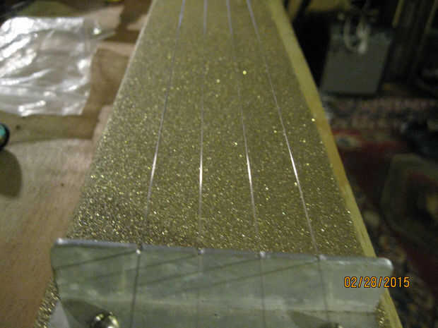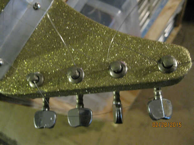 Ahora he instalado algunas cadenas. Después de treinta años de juego y recolectar guitarras he terminé con un montón de paquetes parciales de cadenas. Esto dio a mí un montón de opciones para configurar y afinar. Después de un poco de ensayo y error me decidí por E-G-C-D # con cuerdas.011,.012,.015 y.016. Estas son cadenas de suave así que no habrá cualquier zumbido o raspadura de herida cuerdas. Si quería probar un menor ajuste más tarde conseguiría cuerdas jazz de herida plana para un suave sonido. Esto da un acorde de C mayor en las tres cuerdas más bajas y un do menor en las tres cuerdas superiores. Esto también da algunos intervalos suena fresco entre pares de secuencias. Esto hará más sentido en el video.