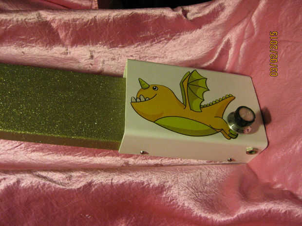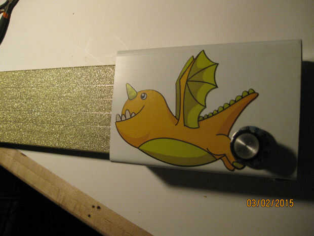 El acero del regazo estaba listo para jugar pero algo me estaba molestando. El brillo parecía realmente llamativo pero fue aburrida clase de la cubierta de PVC. Puesto que todo se ve mejor con una pegatina en él, fui a mi cajón de la etiqueta engomada y encontró un fresco amarillo y verde vuelo monstruo que emparejó el brillo bastante bien. Ahora lo hace.