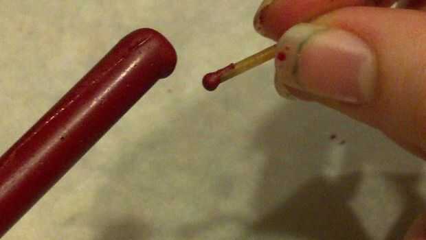 3. volver la tiza melty, al igual que antes. Ahora deje caer esta gota debajo de la punta de su lápiz mini y girar, por lo que crea un borde más grueso alrededor de la punta.