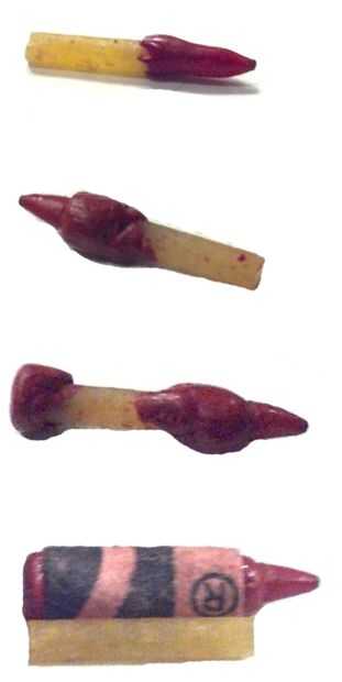 4. obtener la tiza melty otra vez. Ahora deje caer una gota más pequeña en el otro extremo de la palanca. Deje que la gota naturalmente formar boca abajo y luego cuando está a punto de cool, presione ligeramente en el extremo posterior de su crayón grande por que tiene un piso inferior.