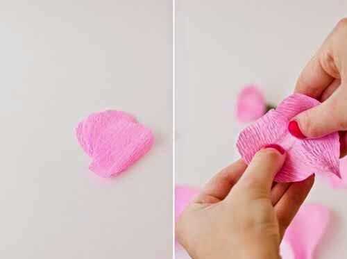 Puede utilizar la mano para tirar los pétalos para que queden curvas naturalmente.