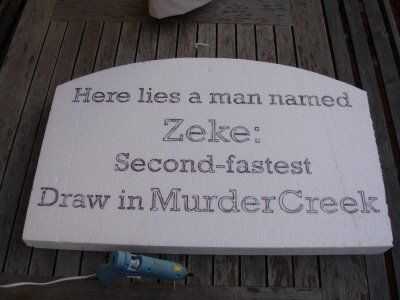 Para empezar, usted necesitará crear un epitafio (las letras), preferiblemente en el ordenador y la escala para que quepa tu lápida de espuma de poliestireno. A continuación, utilice la impresión como una plantilla y dibujar las letras sobre la espuma. Ya he utilizado el cortador de hotwire para cortar la forma de éste.
