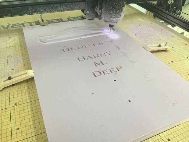Si no tiene una máquina de CNC y no se desespere, hay otras opciones mucho menos agradables para usted. No voy a ir en detalle completo pero en el pasado he impreso el diseño, pega en y enrutados hacia fuera a mano. (Si no me crees, ver este vídeo). También, ya que es espuma, supongo que sólo podría empezar a hackear en él con un cuchillo y avanzar.