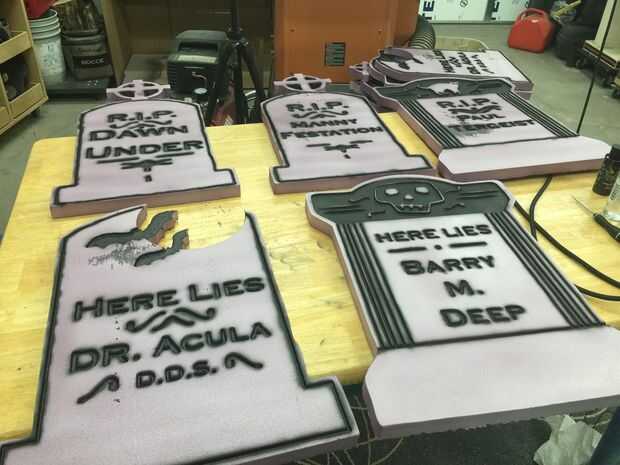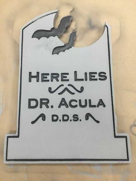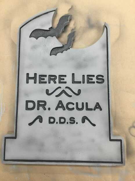 No importa qué método que elija para tallar el diseño, estoy seguro que usted tendrá algunos limpieza que hacer. En mi caso, la broca a la izquierda un montón de pequeñas "fuzzies" que realmente no quería a la arena. Afortunadamente para mí, la espuma se deshace cuando se aplica calor! (a menos que usted utiliza a madera contrachapada... pobre). Utilicé mi pistola de calor para derretir todo el poco "fuzzies" y tiene la ventaja añadida de que el aspecto de la piedra sepulcral más resistido! Perfecto!