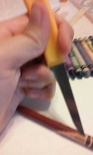 * Muy cuidado uso adulto supervisión si necesarias * toma su cuchillo y colocarlo en la costura de donde se une el papel de crayón. Aplicar algunas, la fuerza y tirar hacia atrás con el cuchillo. Retirar los contenedores de lápices de colores restantes. Repetir este proceso con los lápices de colores se utiliza.