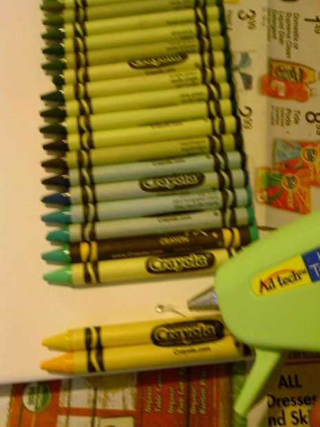 El arma de pegamento debe caliente por ahora y usted deben haber todos tus crayones solicitadas arreglado cómo desea que aparezcan en tu lienzo. Recomendamos sacar sólo un par de lápices de colores a la vez porque el pegamento se seca tan rápidamente. Aplique el pegamento caliente sobre el lienzo y rápidamente Coloque lápices de colores en la línea de pegamento. Continúe haciendo esto hasta que todos tus lápices de colores se pegan!