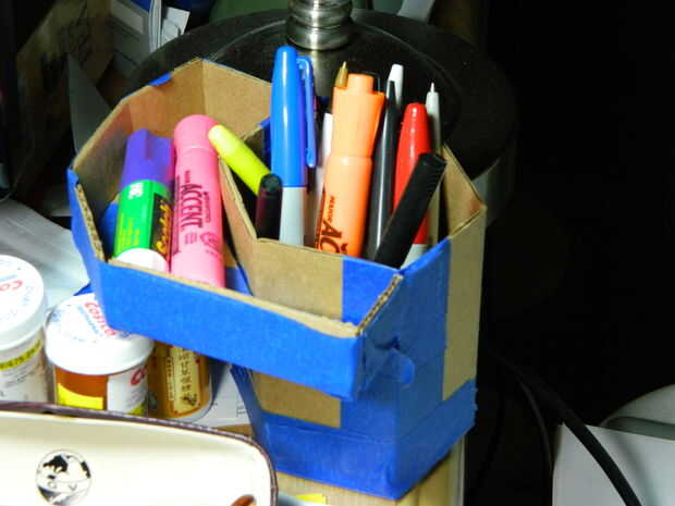 recientemente, para requisitos particulares un lápiz de un compañero de trabajo. Cuando iba a mostrarlo, no sentarse derecho por sí mismo. Él intentó hacer algo de un clip que no hacer el truco. Así que utilicé un pedazo de cartón de la tapa de una c