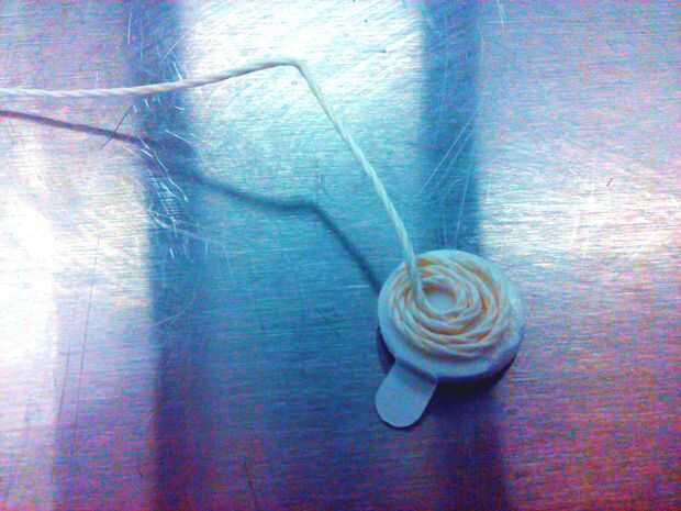 Envuelva la cuerda en un lado de la cinta de doble palo y palo hasta el fondo de la jarra, tal como se muestra en la imagen.