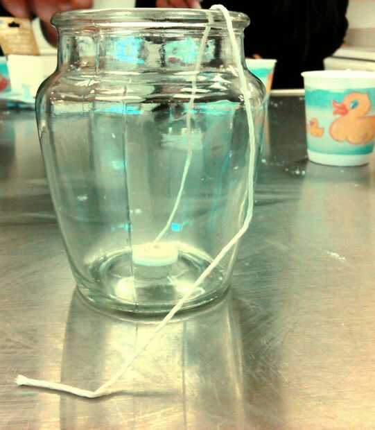 Mientras que calienta, encontrar su cinta doble palo y cortar un trozo de cadena, ya que su tarro.