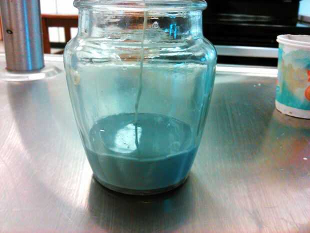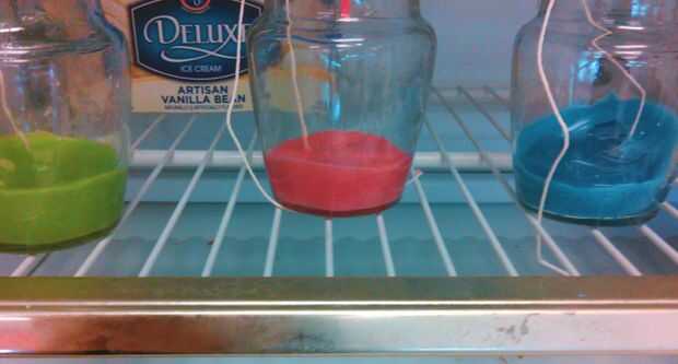 Cuando tengas la mezcla, usted puede ahora viértalo en el frasco cuidadosamente. Mientras que usted está vertiendo, asegúrese de que su cadena/mecha todavía está en el centro. Entonces se puede colocar en el congelador. Y esperar a que lo ha hecho de enfriamiento.