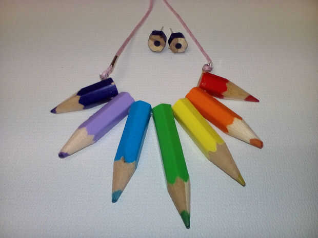 Joyería hecha de lápices de colores estándar es brillante, lindo y un montón de diversión! También es muy rápido y fácil de hacer. Como joyería de la declaración para una boda, un regalo original de maestro, o simplemente divertidas joyas para un niño, este girará cabezas y personas preguntando: ¿Cómo hiciste eso? Aquí es cómo...