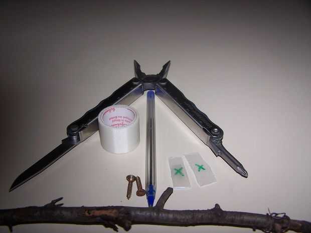 1. una herramienta multiusos o un cuchillo y un destornillador (+ o -, o ambos).