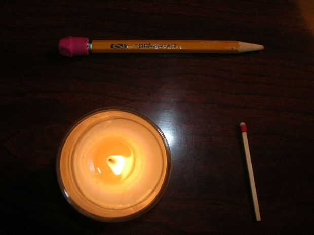 3. vela de cera (se puede también obtener cera normal y caliente sobre el lápiz)