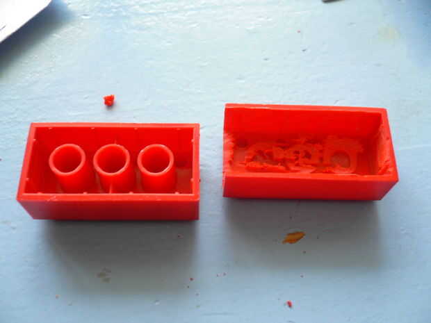 A continuación, utilice el disco rotatorio para quitar el interior de la pieza de lego. Lo hice primero corte la mitad de la final de lo lego, y luego mi camino hasta el final. Recuerde sólo abrir uno de los extremos de su lego, y solamente hacer tan amplia como el puerto USB.