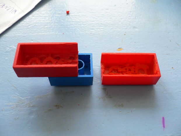 Próximo uso esmeril para aplanar hacia fuera todo lo que no podía conseguir con el disco. También, puede que necesite adelgazar las paredes de lego, para permitir que la unidad USB caber. La lijadora es útil para esto.
