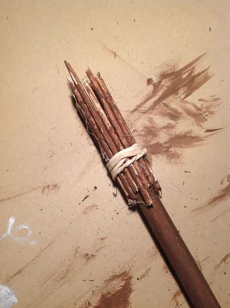 Envolver su pequeña banda de goma alrededor de los palillos, un par de veces. Esto le dan un aspecto fresco y ayudar a mantener los palillos juntos firmemente mientras el pegamento seca. Afila la punta y su listo para ir!